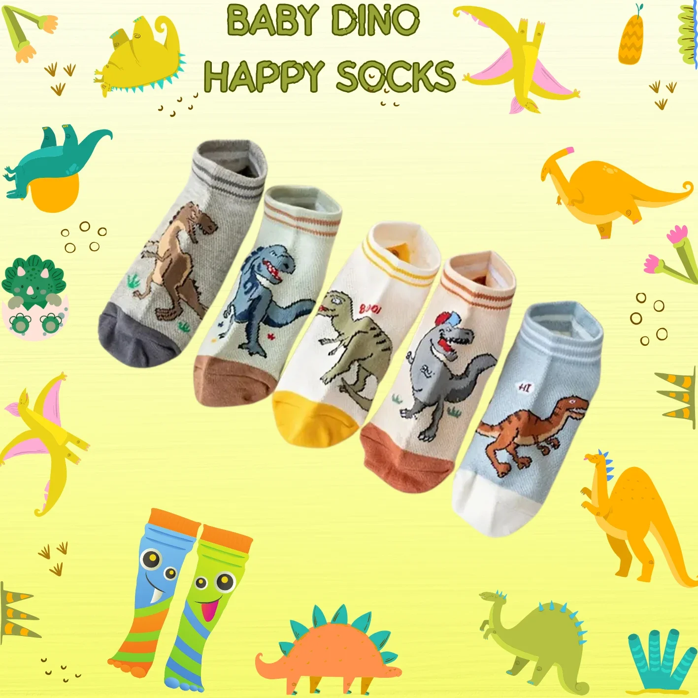 Beastmode Baby Dinosaur Socks – 3 Pairs (Random Colors)